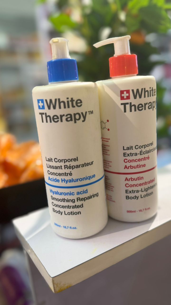 White Therapy Body Lotion is an advanced skincare solution designed to brighten, hydrate, and even out skin tone for a smooth and radiant complexion. Formulated with powerful ingredients like arbutin or glutathione, this lotion helps reduce the appearance of dark spots, pigmentation, and uneven skin tone while nourishing the skin deeply.
